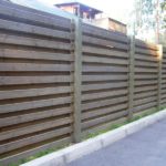 К брусьям прибиваются деревянные лаги длинными гвоздями, чтобы была возможность их загнуть. Лаги прибиваются на высоте не ниже 20 см от земли. На них прибиваются доски забора, иди привинчиваются шурупами. Доски монтируются так, как необходимо владельцу участка: плотно или на расстоянии друг от друга.
