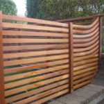 Деревянный забор с кирпичом смотрится очень солидно, это классическое сочетание.