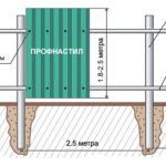 Если вы хотите сделать забор из профнастила своими руками стандартной высотой до двух метров в средней полосе на непучинистых грунтах, наиболее удобной технологией установки является бутование. Этот способ защитит опору от воздействия сил морозного пучения.
